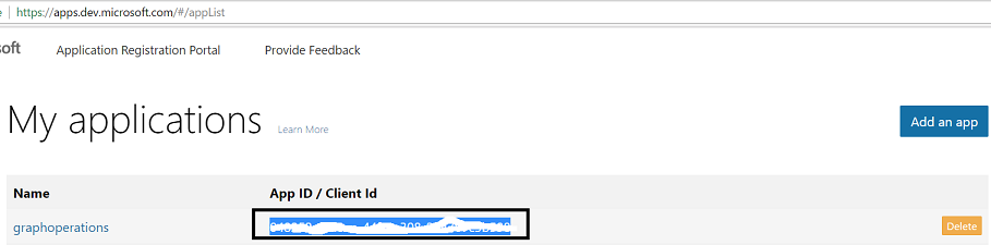 Access the graph apps portal https://apps.dev.microsoft.com/.