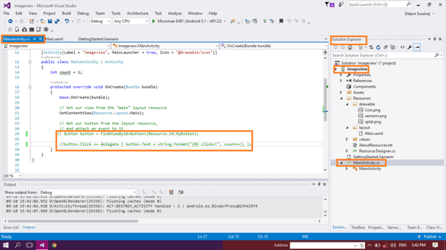 Step 6 - Next, delete the C# button action code in MainActivity.cs page.