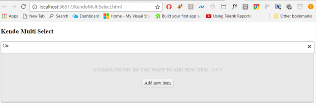 Now, API's are ready. Let's start to implement the Add new item functioanlity in Kendo MultiSelect control.