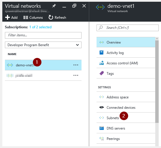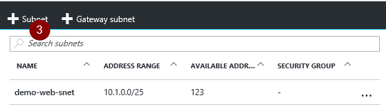 Navigate to the Virtual Network and click on the network “demo-vnet1” to which we will like to add another subnet.