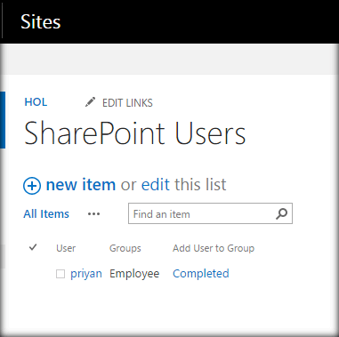 This will trigger the workflow. The status can be verified from the workflow column ‘Add User to Group’.