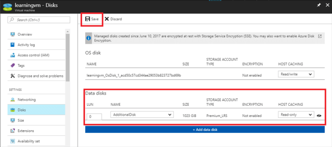 On the Disks blade, it shows our disk and saves the disk.