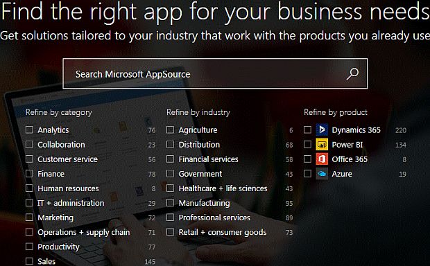 - Click Microsoft Appsource to navigate to Appsource.