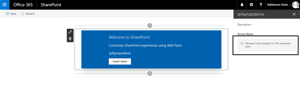 - label:"Message to be displayed on SPfx properties pane",