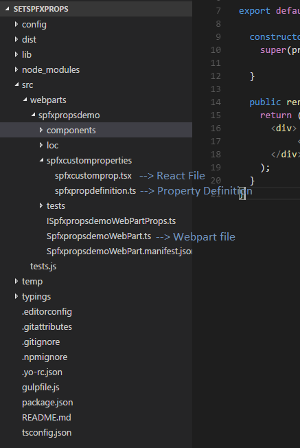 In SPFx project, create a folder to hold the property definition file and React component file.