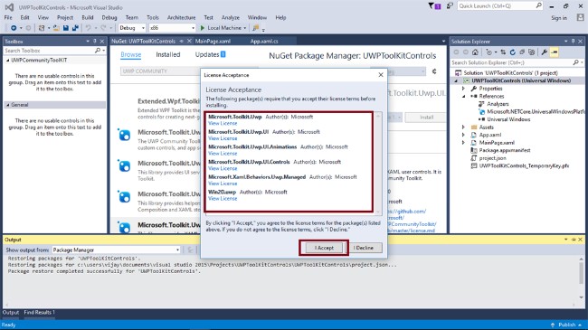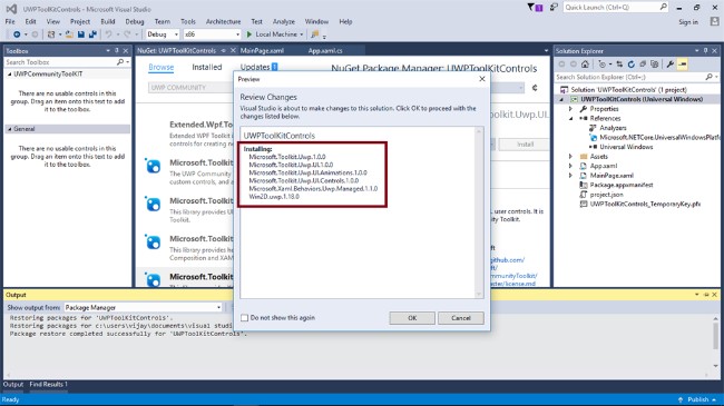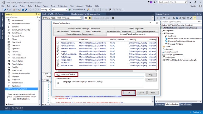 Step 4 - Now, all the UWP Toolkit controls are added to your project.