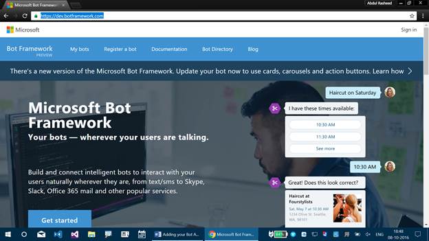 - Click here to know about Bot Framework and to build your first Bot Application.