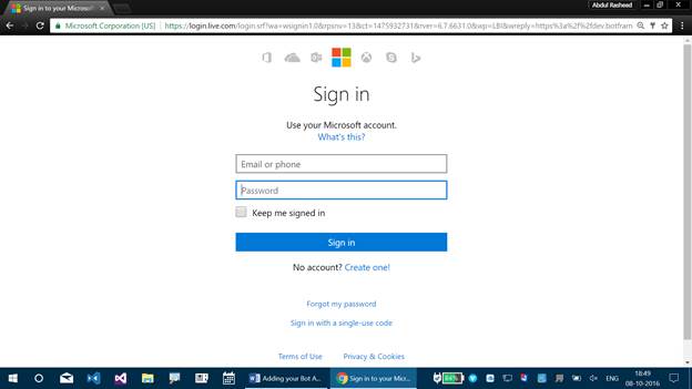 Sign in with Microsoft Account in which you have your Bot Application.