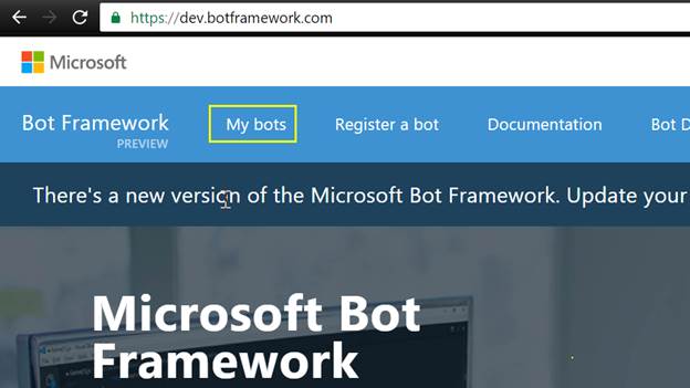 - Click here to register your Bot Application and test your connection at Bot Framework.