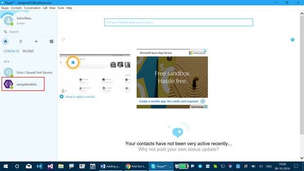 This article will help you to add your Bot Application for Skype Channel. A Bot Application completes, when you host it on a channel, which will help us to use it in real time Applications.