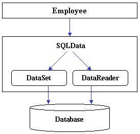 Figure 2 illustrates the main idea behind the SQLData struct: The SQLData struct becomes our access strategy. Only SQLData has to deal with and understand the differences between the DataSet and DataReader. Lets look at some code that illustrates how SQLData hides the complexity. The code below creates an Employee object and loads a read-only employee record. It then asks for the 'FirstName' column.