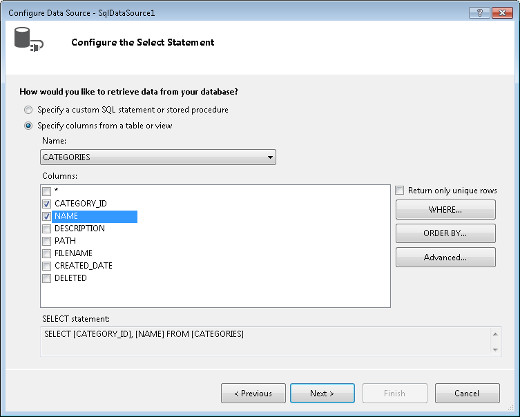 - <asp:SqlDataSource ID="SqlDataSource1" runat="server" ConnectionString="<%$ ConnectionStrings:GamesConnectionString %>" SelectCommand="SELECT [CATEGORY_ID], [NAME] FROM [CATEGORIES]"></asp:SqlDataSource>