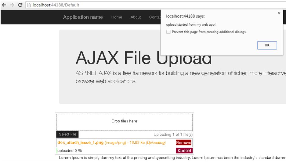 - alert("upload started from my web app!");