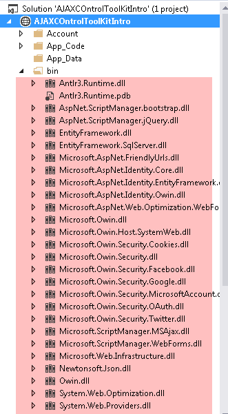 And the project look like this which has Reference in bin directory namely AjaxControlToolKit.dll.