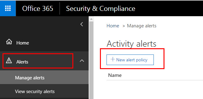 Now, click on "+New alert policy" button. It will popup new alert policy form.