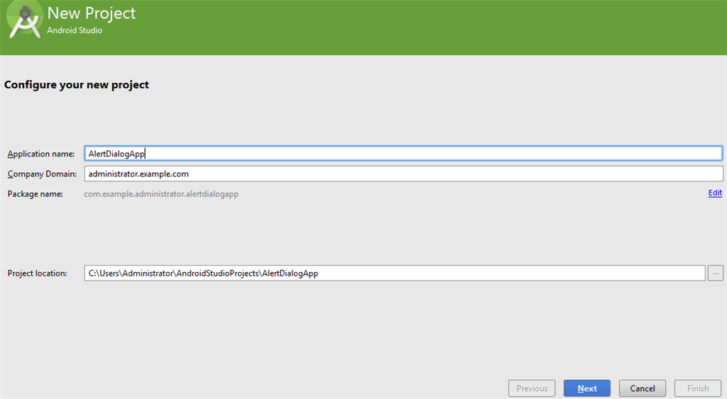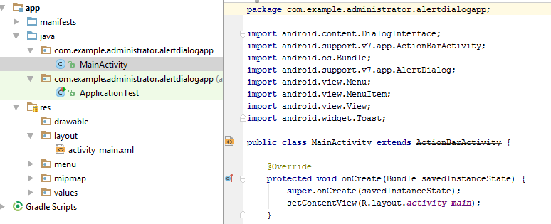 So to make an alert dialog, we need to make an object of AlertDialogBuilder which is an inner class of AlertDialog while Android AlertDialog is the subclass of Dialog class and syntax is given below to create an alert dialog.