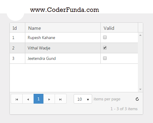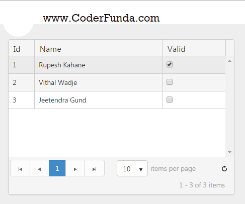 Now, run the application. In the controller, I have assigned False values to IsValid property. Now, I am selecting checkbox of the first one and our result will be, as shown below.