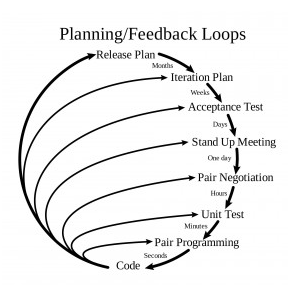 Then, the team starts with its series of weekly cycles. At the end of each development cycle, the team gets together with the customer to finalize which stories should be addressed next. Now, just like scrum, the team breaks up these stories into smaller tasks and estimates them according to the timeline of one week.