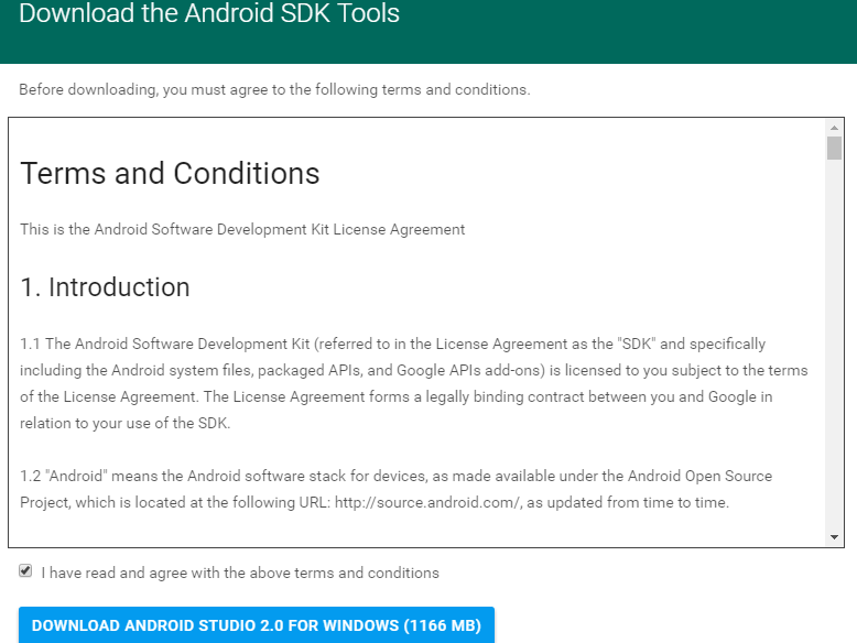 5. Steps to get the tools and SDK for creating environment for Android application.