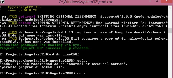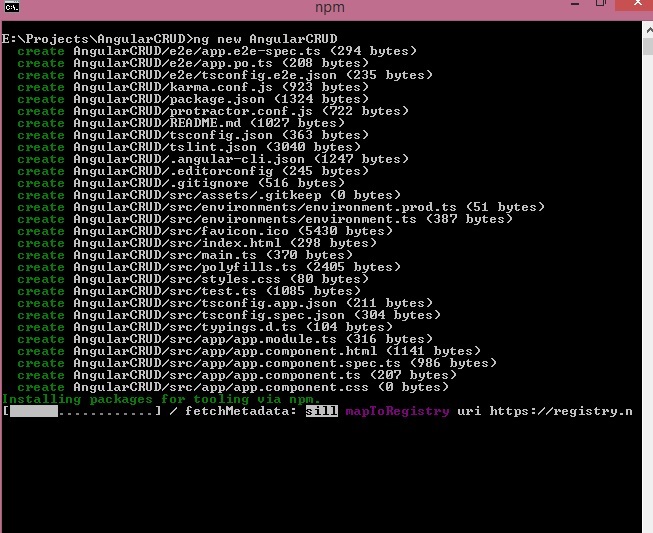 If installed successfully, then run this command for creating a new application. Let's again set the project name as AngularCRUD.