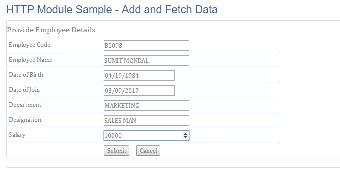 - <h3>HTTP Module Sample - Add and Fetch Data</h3>