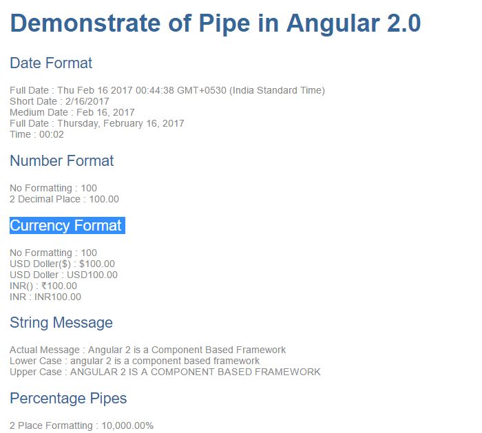 -     <h1>Demonstrate of Pipe in Angular 2.0</h1>