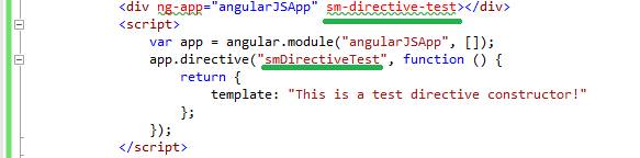 We can also create custom directives in AngularJS. In the above example, a custom directive 'sm-directive-test' is implemented. Its output is provided below.