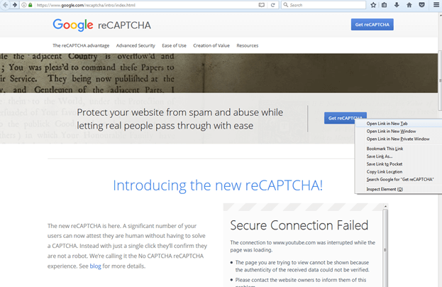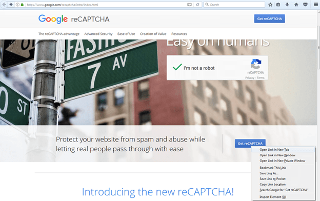 Then click on the top right corner Get reCaptcha button.