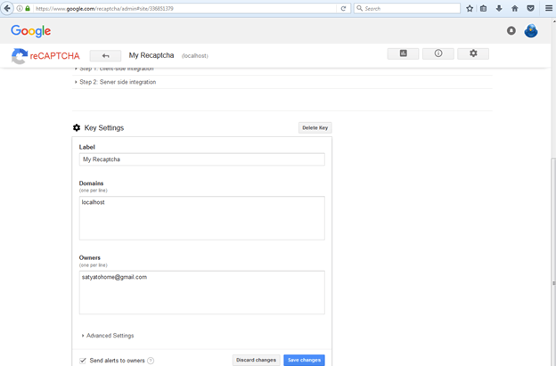 - Steps for creating your own Site Key and Secret Key as I mentioned above.