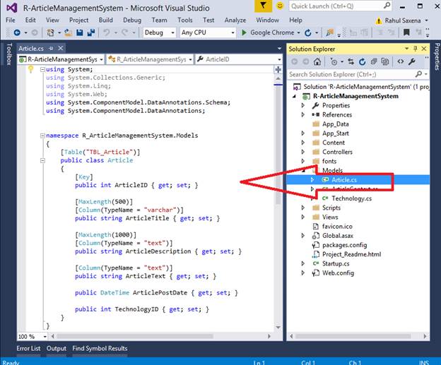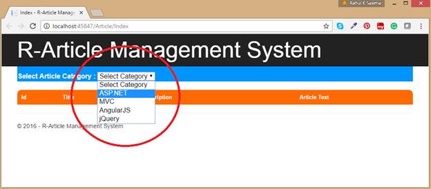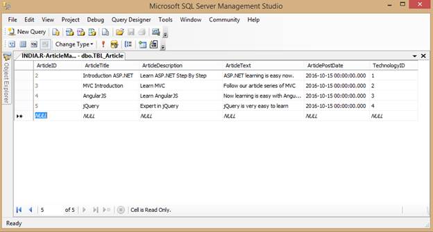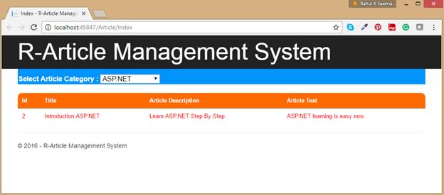 Here, I am going to make a project on Article Management System. Here, the user can post an article, view all articles, add new technology etc. In this first part, I am going to show how we can show all articles in a list. Here, I am going to use Code First approach.