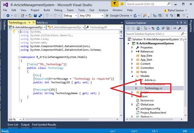 Now, again right click on Models folder and add a new class: Technology.cs and execute the code, given below.