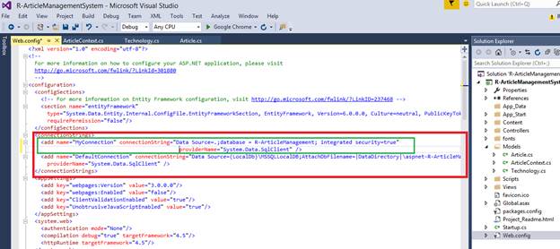 - <add name="MyConnection" connectionString="Data Source=.;database = R-ArticleManagement; integrated security=true"