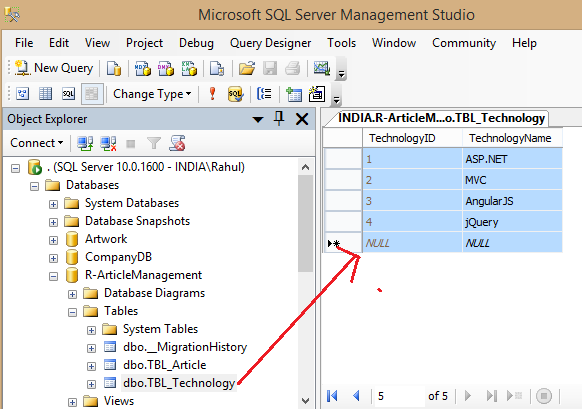 As I told you, I am going to use Code First approach. Hence, there is no need to create a database. It will create automatically, when you will run your Application first.