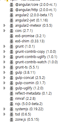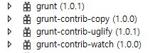 Now save the package.json file and you should be able to see a grunt package. Under Dependencies/ the npm Folder will be first Resorted and then installed.