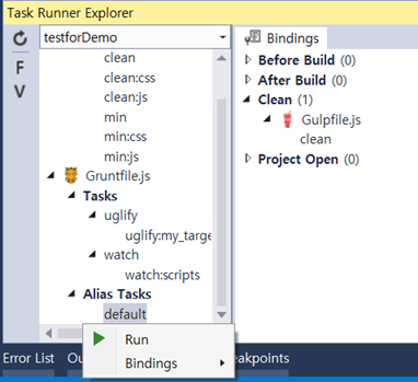 - How to Run the Grunt file using Visual Studio Task Runner Explorer