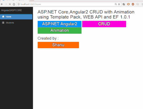 Build and run the application and you can see the Home page with animation and Student CRUD page animation.