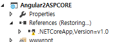 After creating ASP.NET Core Angular 2 Application, wait for few seconds. You will see that all the dependencies are automatically restored.