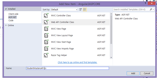 - Creating ASP.NET Core Angular 2 Starter Application (.NET Core), using Template Pack.