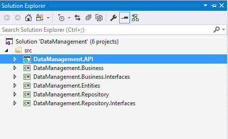 After adding all the projects mentioned above, your Solution Explorer will look as shown below in the screenshot.