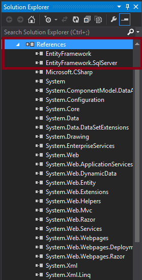 After installing the EntityFramework from NuGet, it will be added as a reference to our project.