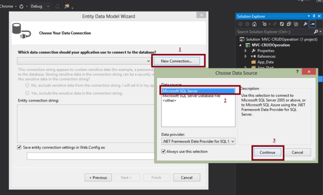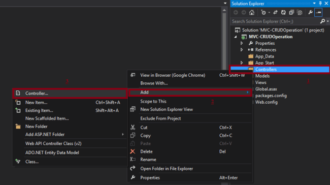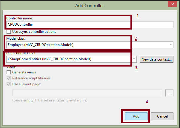 This option is enabled from Visual Studio 2013 for MVC and Web-api. Scaffolding generates the code automatically for CRUD operations, here will use the scaffolding MVC with Entity Framework to create Dynamic code for doingcreate, read, update, and delete. We will see one by one in the following steps for better understanding.