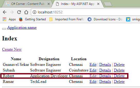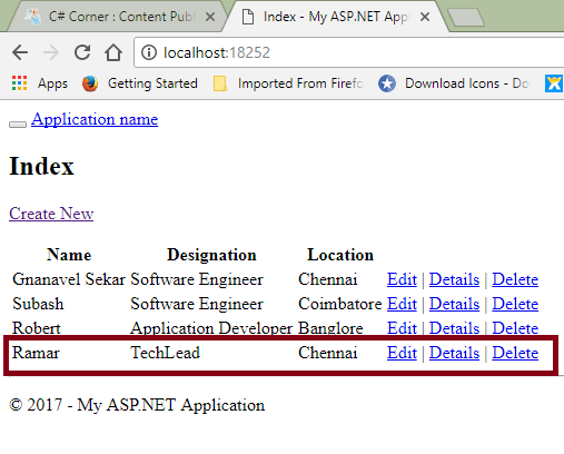 Now you can see the below image (list of employee) with new inserted record "Ramar"