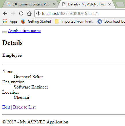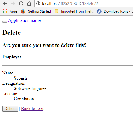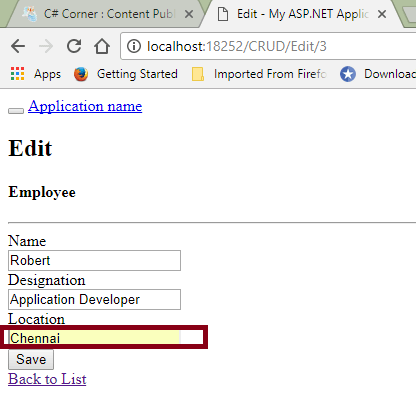 Now try to edit the record as follows, here I changed the location from Banglore to Chennai