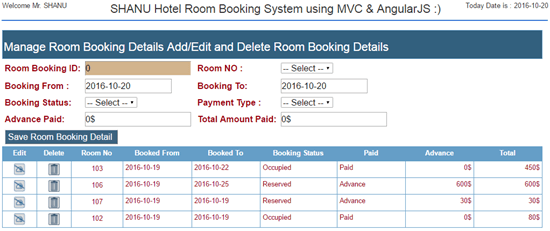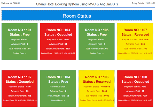 This is a simple web based Hotel Room Booking developed using MVC and AngularJS. This application can be extended to add more features as per your requirement.