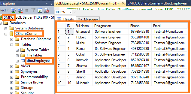 - INSERT [dbo].[Employee] ([ID], [FullName], [Designation], [Phone], [Email]) VALUES (5, N'Gokul', N'Sr. Software Engineer', N'7412589630', N'[email protected]')