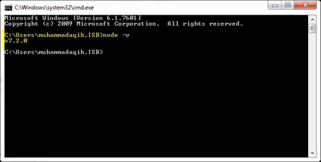 To check if it has successfully installed on your local machine, open Command Prompt Window and Type node –v and hit enter. If it returns the node version, as shown in the image, it has been successfully installed.