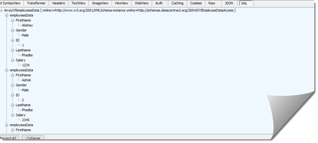 Here, we have set the quality factor for JSON and XML and now, execute that. You will get the data in XML, as shown below,