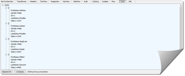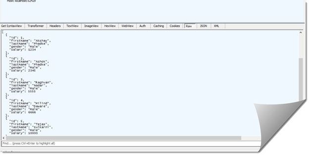 Now, if don’t set any Acceptheader, then by default Web API returns JSON data.