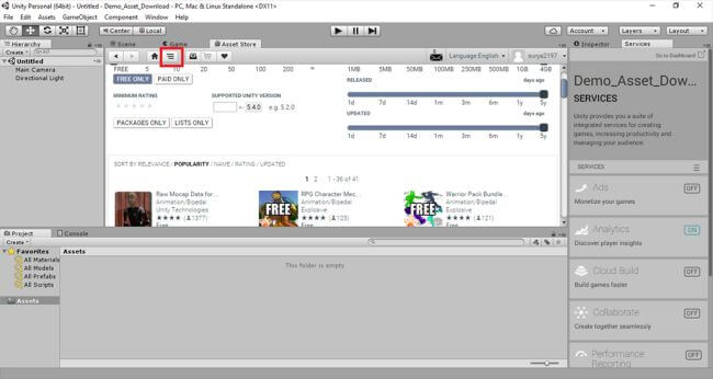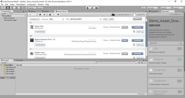 Choose the asset as your wish.The assets are available from free to paid and we can easily search the required asset in the required price and check the asset updates regularly.The toggle download allows us to maintain the packages we downloaded and other details in it.