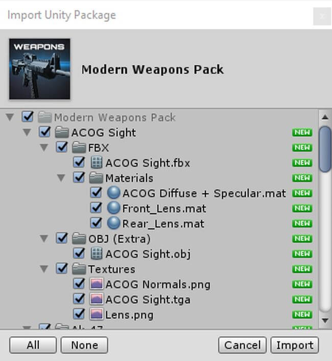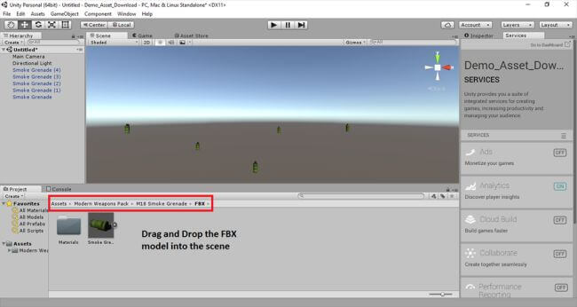 Inside the M18smoke consists of various folders; it contains the FBX model which is the 3D model object that we downloaded. Just drag and drop the weapons, characters, environments and the other FBX models into our scene easily for the game development like this weapon asset.